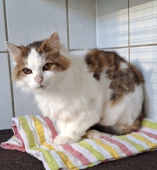 Flocke, ein 14 Jahre alter Kater, wurde im Tierheim abgegeben, weil sein Besitzer ins Pflegeheim musste. Bei seiner Ankunft war der Langhaarmix in keinem guten Pflegezustand. Sein Fell war so stark mit Exoparasiten befallen, so dass wir ihn etwas "frisieren" mussten, um ihn erfolgreich behandeln zu können. Flocke hat alles gut überstanden, sich erholt und das Fell wächst auch schon wieder nach.