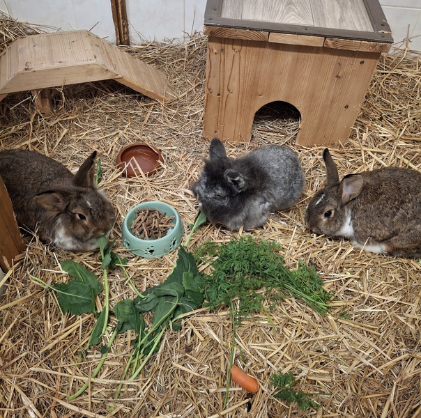 Die drei Kaninchen sind Mitte November 2025 in ein tolles Kaninchenparadies bei verantwortungsvollen Tierfreunden umgezogen!